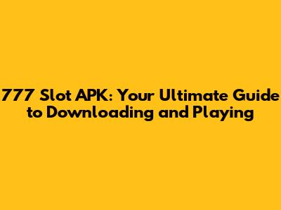 777 Slot APK: Your Guide To Downloading And Playing