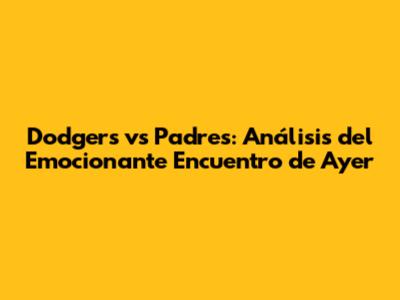 Dodgers Vs Padres: Análisis Del Emocionante Encuentro De Ayer