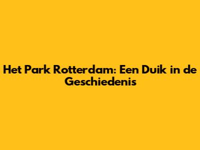 Het Park Rotterdam: Van Historie Tot Huidige Pracht
