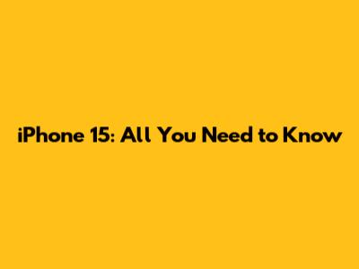 IPhone 15: All You Need To Know
