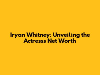 Hey everyone! Today, we’re diving into the life and career of the talented actress, Iryan Whitney. Many of you are probably curious about her journey in the entertainment industry and, of course, the big question: what is Iryan Whitney's net worth? Let's get right into it and explore her path to success, her notable roles, and how she has accumulated her wealth.